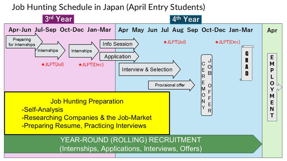 - The timing for starting job hunting is almost the same as for students who enroll in April.